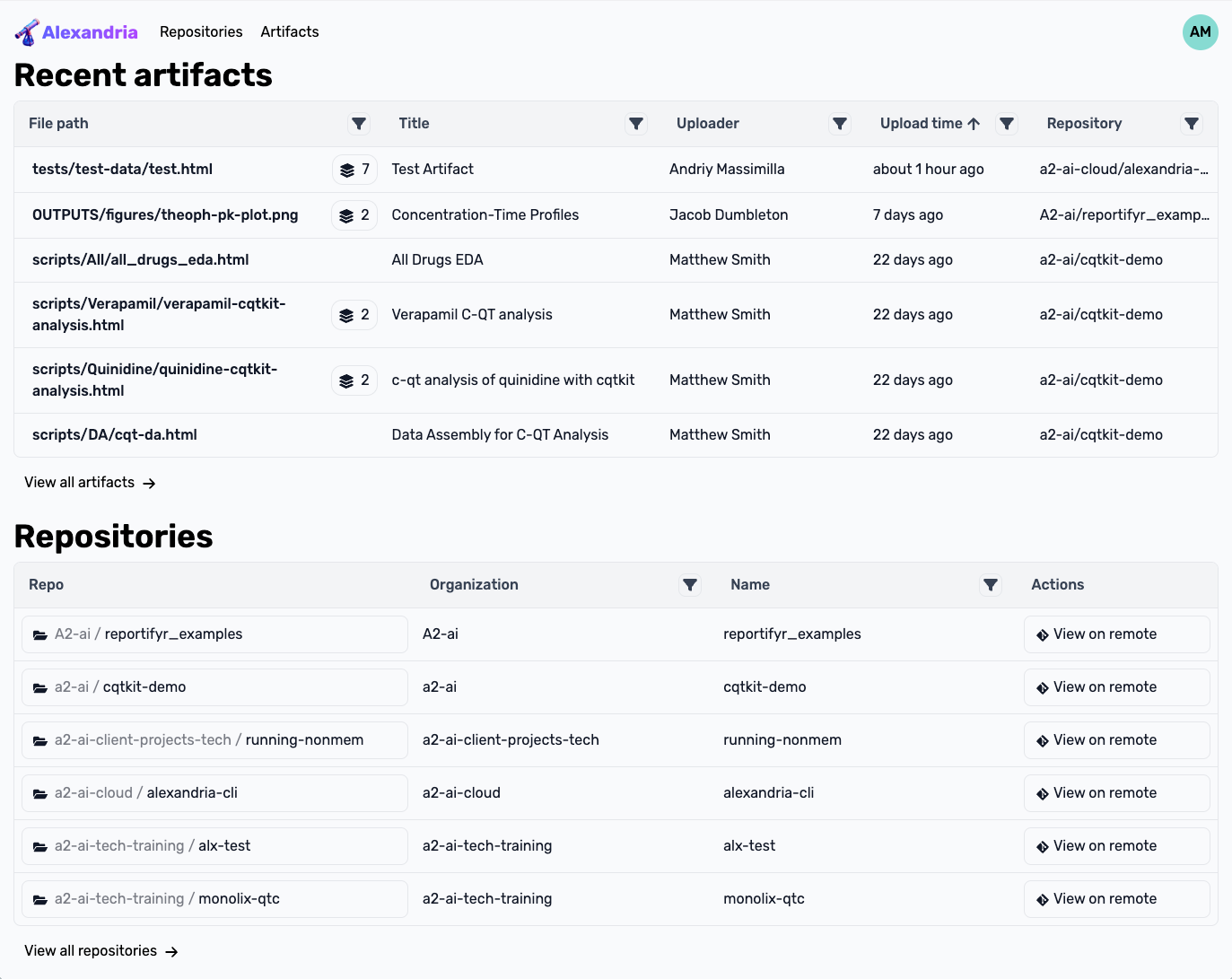 Alexandria is the central hub for all your work (we call them artifacts), providing a platform for scientists to store, share, and collaborate. With support for a diverse array of artifact types, Alexandria enables seamless sharing and collaboration across all forms of artifacts.